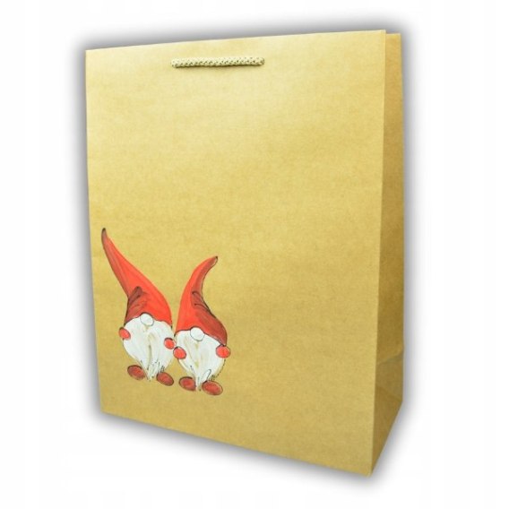 Torebka Świąteczna ręcznie zdobiona na prezent Skrzat Mikołaj Duża